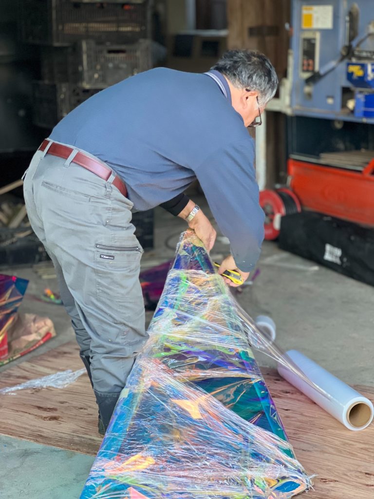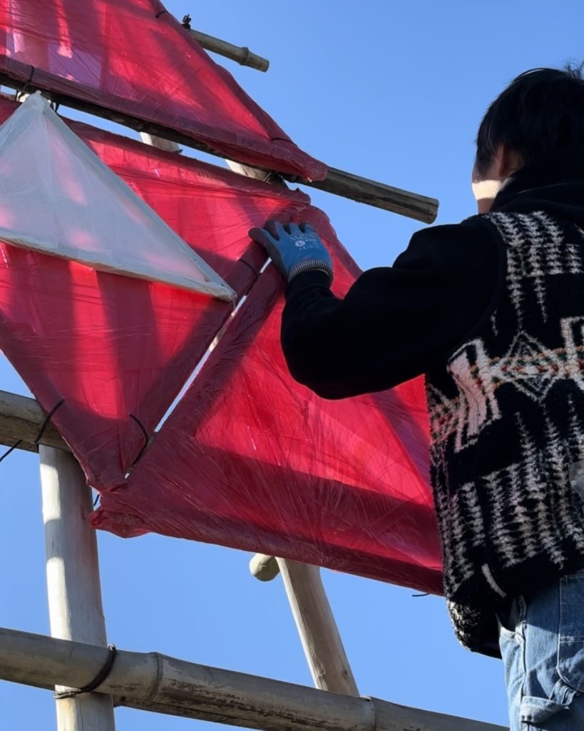 完成した三角をはさがけやトンネルのベースに取り付けていきます
