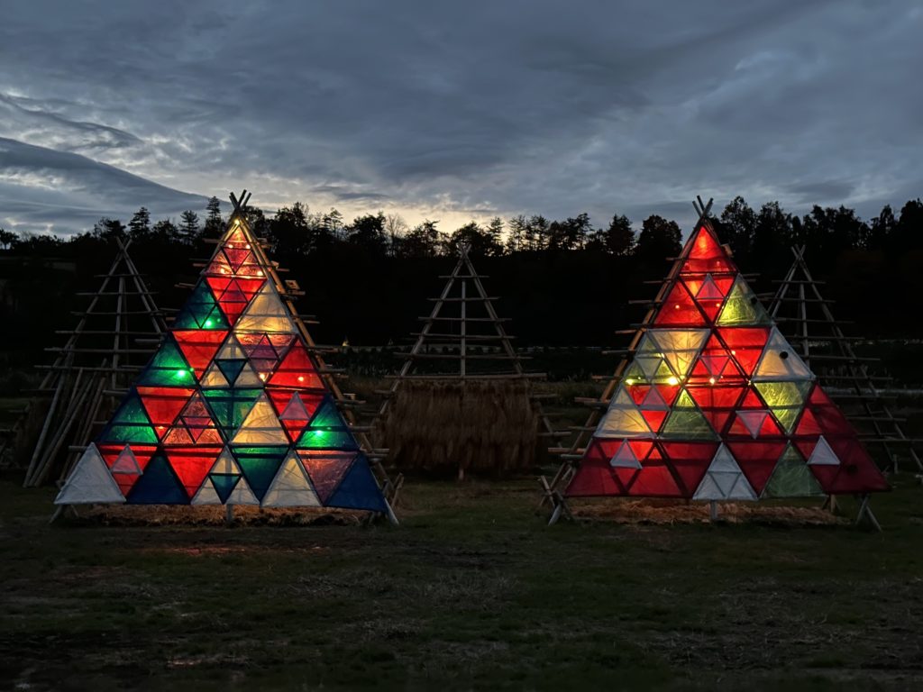 かぼちゃの馬車の骨組みを生かして、中央にツリーを設置