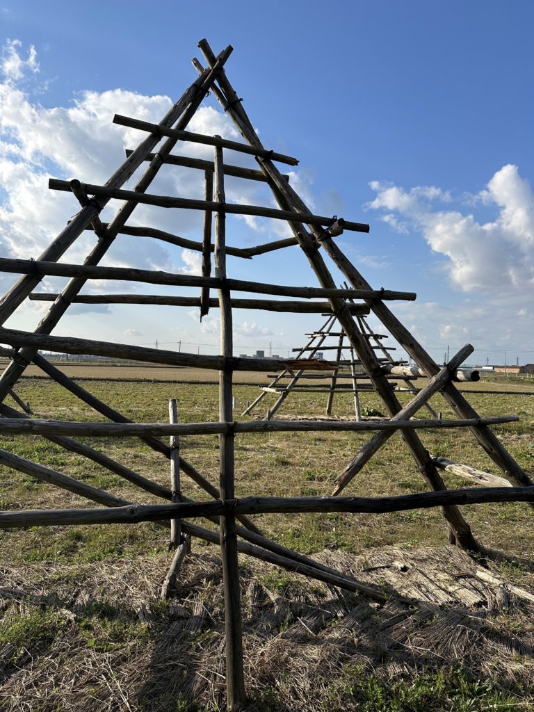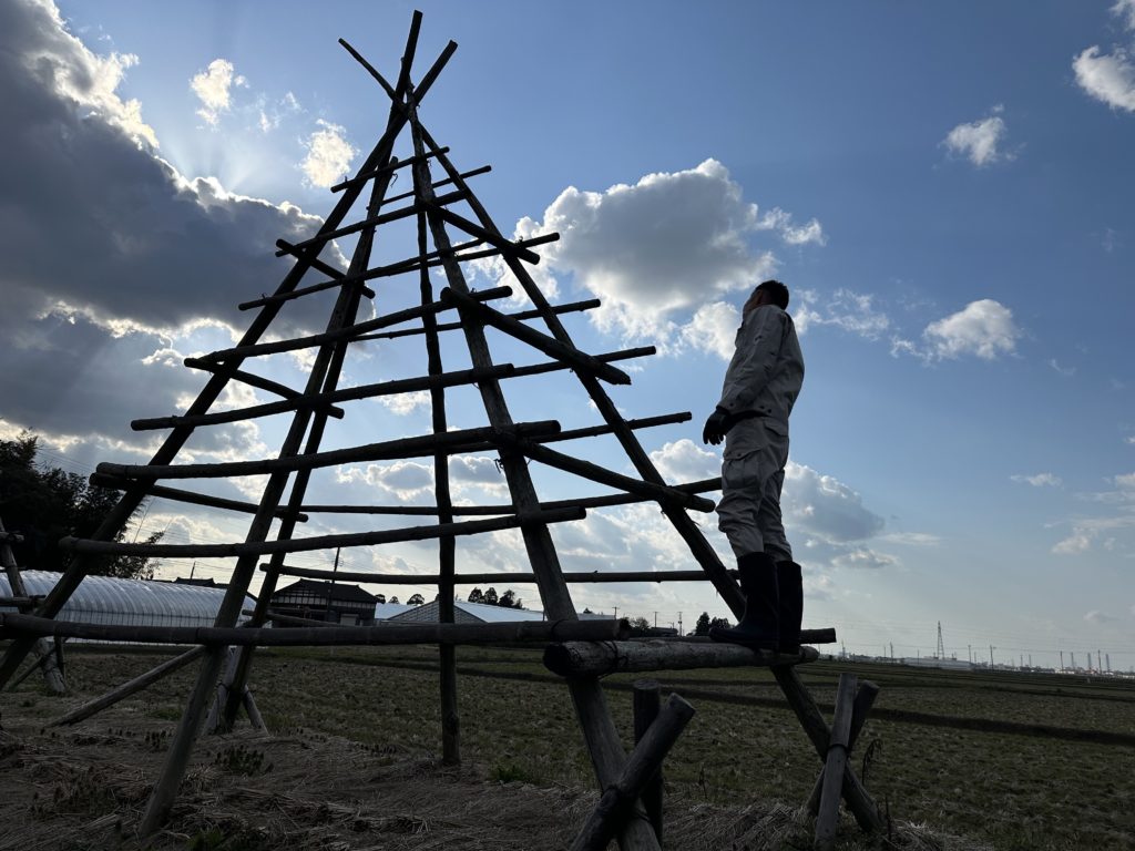 通常のはさがけは、秋にのみ建てて