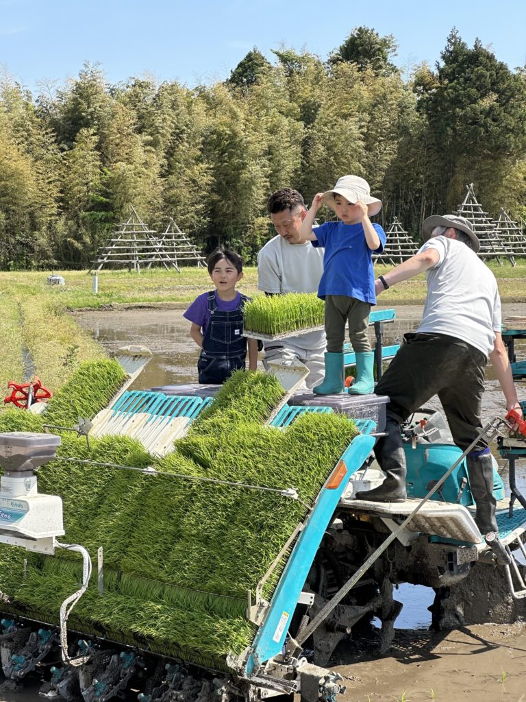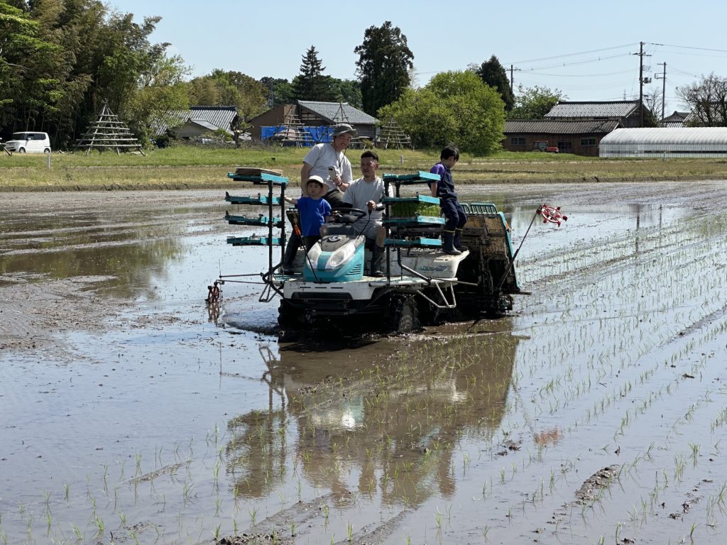 「田植え機乗ってみるー?」