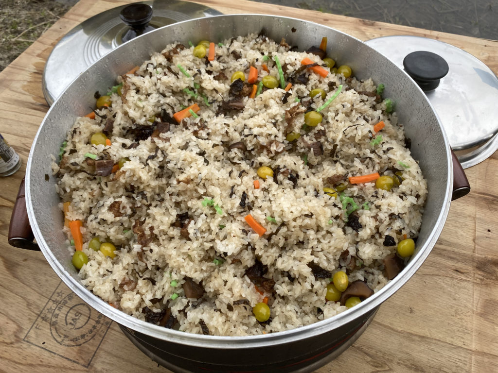 お昼は、先代 仙次郎のおこわとのっぺ汁!